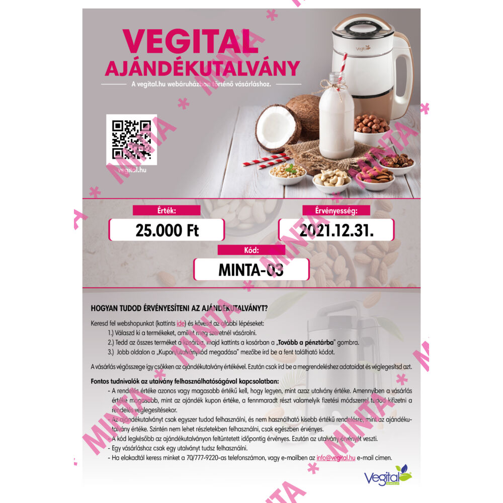 A vásárlástól számított 1 éven belül felhasználható kizárólag webáruházunkban.