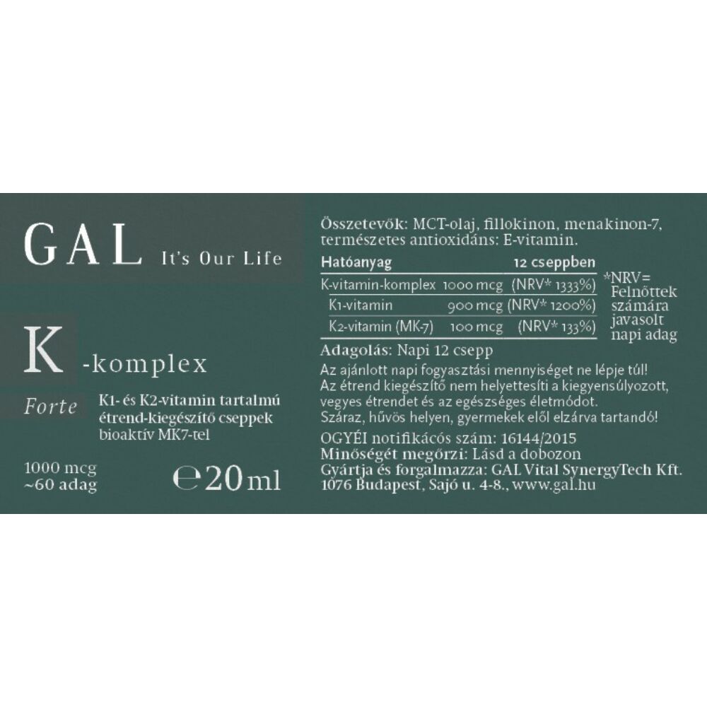 Felhívás: Az étrend-kiegészítők a hazánkban is érvényben levő európai uniós szabályozás szerint olyan élelmiszerek, amelyek a hagyományos étrend kiegészítését szolgálják, és koncentrált formában tartalmaznak tápanyagokat vagy egyéb táplálkozási vagy élettani hatással rendelkező anyagokat, egyenként vagy kombináltan. E termékek a hivatalos állásfoglalásnak megfelelően nem gyógyszerek, nem rendelkeznek gyógyhatással, s nem alkalmasak betegségek kezelésére, sem megelőzésére. A GAL Vital SynergyTech Kft. valamennyi kommunikációs felületén tiszteletben tartja a fentiek jogforrásául szolgáló 37/2004. (IV. 26.) ESzCsM rendeletben írtakat, továbbá a gazdasági versenyhivatali előírásokat. Kijelentjük, hogy a termékeink hatóanyagairól szóló írásaink kizárólag a legfrissebb, független és mértékadó kutatások alapján, összefüggéseik mélyreható tanulmányozása nyomán születnek, s azok eredményeinek bemutatására szolgálnak a fogékony és érdeklődő Olvasók tájékoztatásának törekvésével. E szövegek eladásösztönző célt nem hordoznak, a termékeink megvásárlására nem buzdítanak. Ha Vásárlóink visszatérő rendeléseikkel megtisztelnek bennünket, az csakis azért történjék, mert a GAL termékek jótékony hatásait maguk tapasztalták. Ebben hiszünk, ezért dolgozunk.