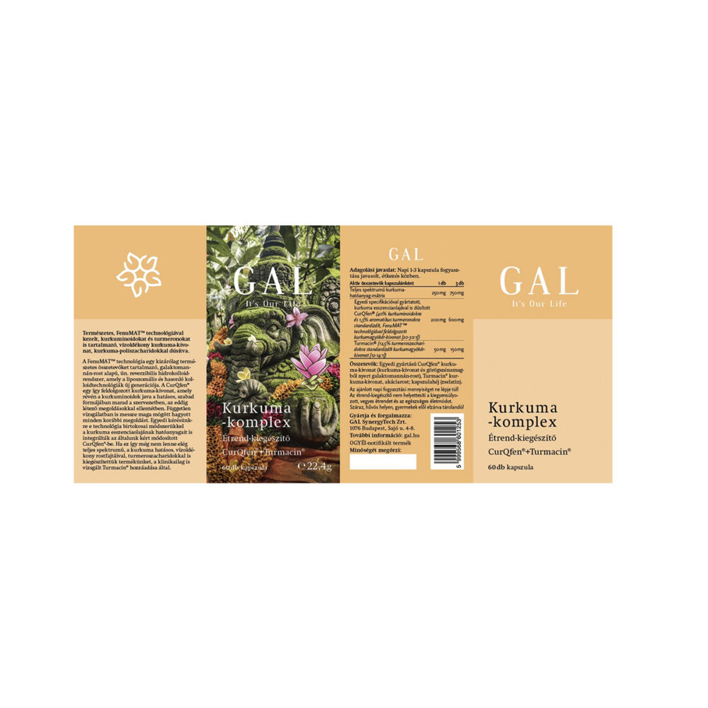 Összetevők: egyedi gyártású CurQfen kurkuma-kivonat (kurkuma-kivonat és görögszénamagból nyert galaktomannán-rost), Turmacin kurkuma-kivonat, akáciarost, kapszulahéj (zselatin).