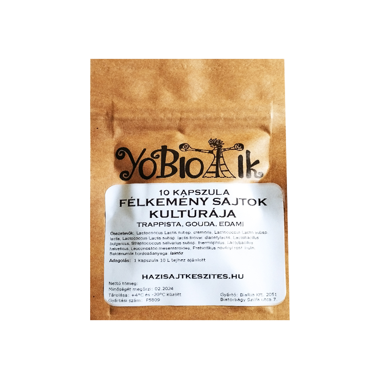 Ajánljuk: Trappista, Gouda, Edami, Óvári, Port Salut, Tilsiti stb.. -félkemény sajtok készítéshez
